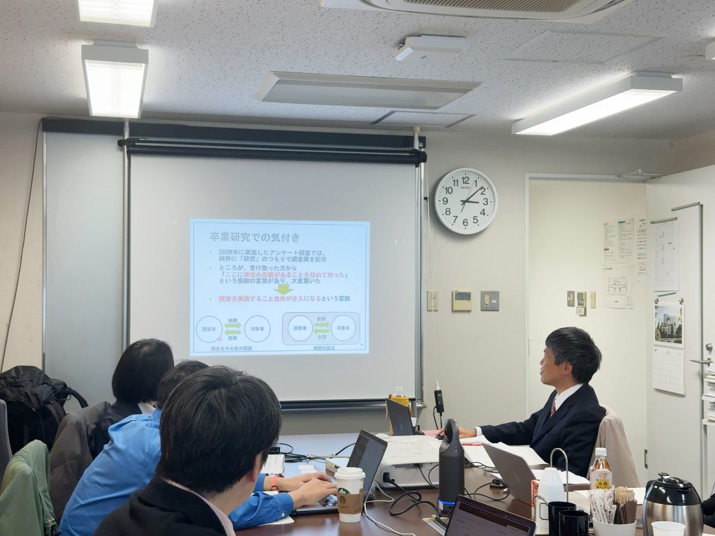 MERA(人間・環境学会)において、「調査という介入~災害研究でフィールドに入って考えること~」と題した研究会を開催しました。これは、諫川が代表を務めている災害の人間・環境学研究委員会で企画したものです。